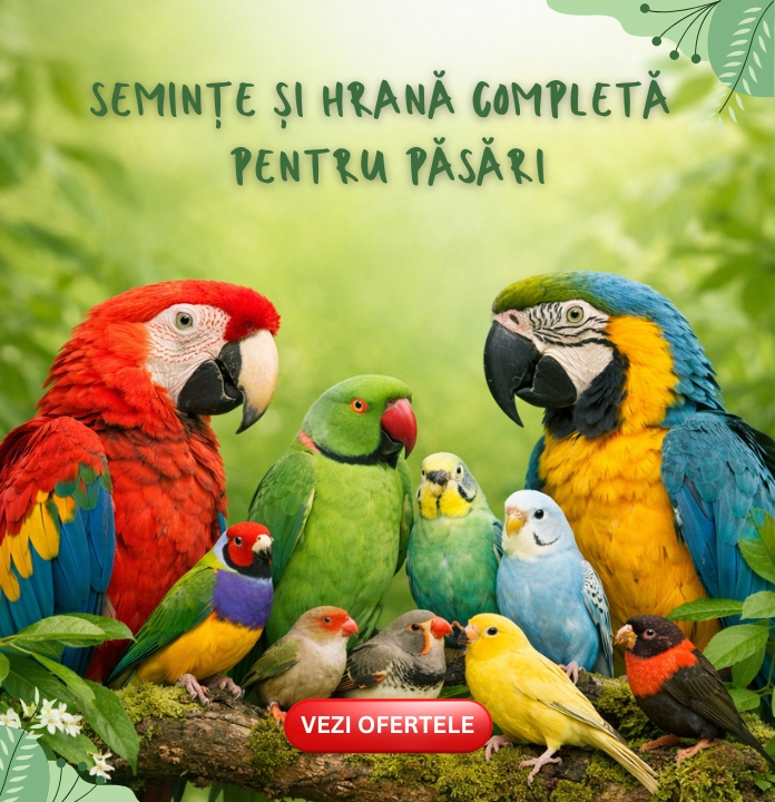 Indiferent dacă deții canari, papagali sau alte păsări exotice, în magazinul nostru online găsești soluții complete pentru îngrijire, alimentație și confort. Ne dorim să îți oferim produse premium la prețuri corecte, cu livrare rapidă în toată România.