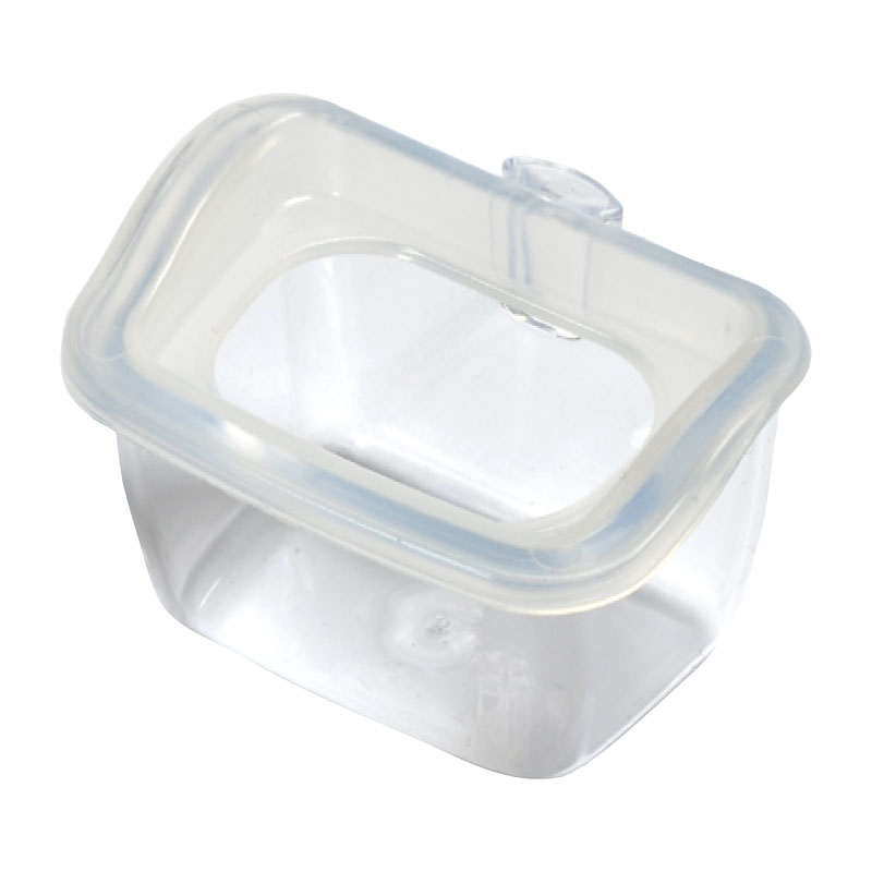 Hrănitoare Giove cu grilă anti risipa 70 × 45 × 50 mm – transparentă, pentru colivii
