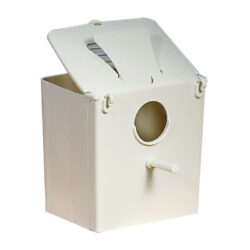 Cuib Michelangelo  din plastic pentru păsări exotice și perusi mici, dimensiuni 120×110×135 mm, cu capac de verificare pentru controlul ouălelor.